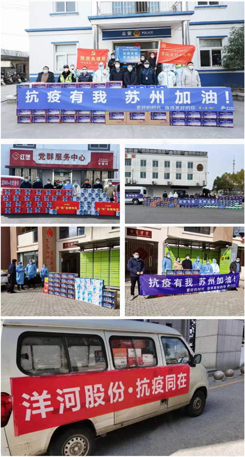 从武汉到南京,到郑州,到扬州,再到苏州……有疫情的地方,就有洋河人忙碌的身影。在抗疫的最前线,洋河股份苏州市场各分办及经销商伙伴自发行动起来,捐赠口罩、防护服、矿泉水、牛奶、方便面等大量抗疫物资,致敬最美抗疫一线工作者。截止到目前,已慰问12个社区、3个街道。
