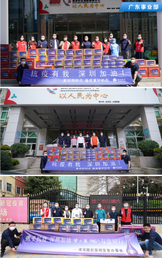 “抗疫有我,深圳加油!”“携手抗疫,深圳加油!”广东事业部深圳分公司先后到大浪街道横朗社区、沙河街道高发社区、光明街道防控指挥部等社区慰问,捐赠抗疫物资。