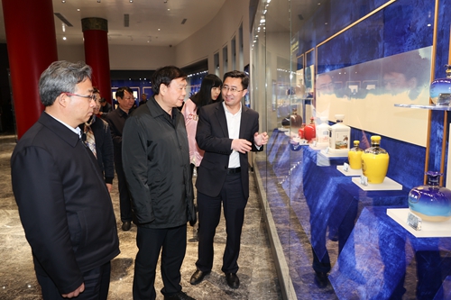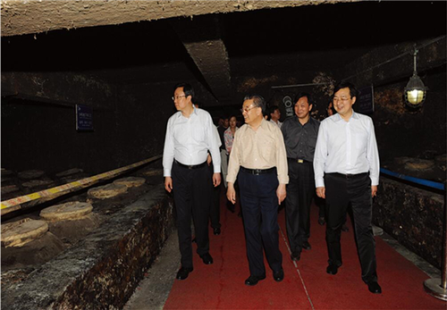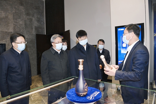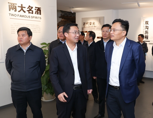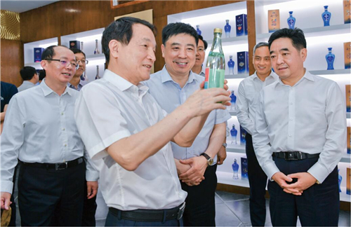 江苏省副省长胡广杰(右一)在洋河股份党委书记、董事长,双沟酒业董事长张联东陪同下调研公司。