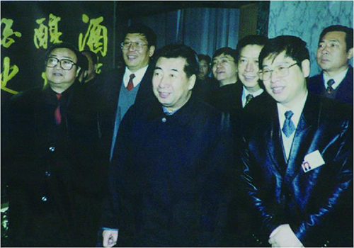 全国政协原副主席孙家正(右一)在洋河股份党委副书记、总裁钟雨陪同下视察公司。